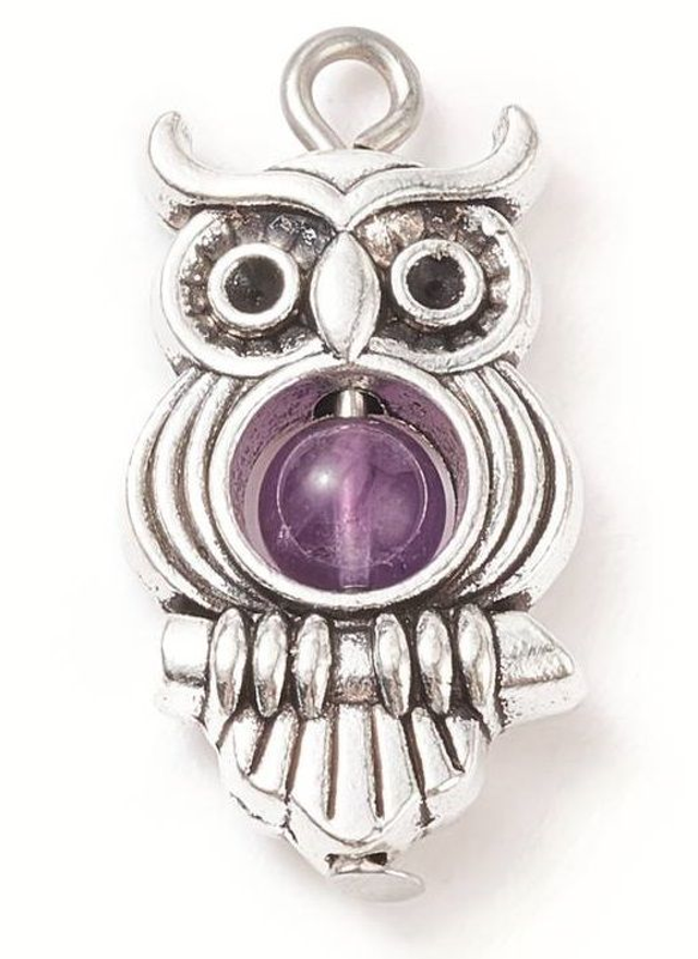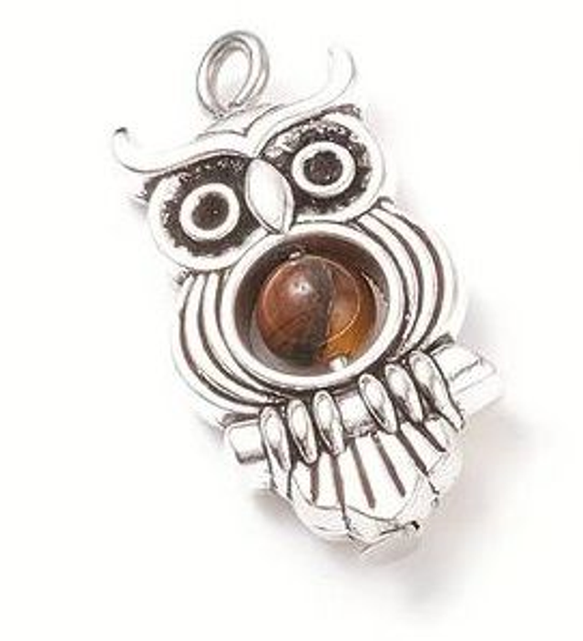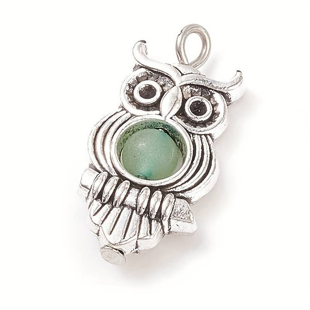 Pendentif hibou avec perle de pierre naturelle